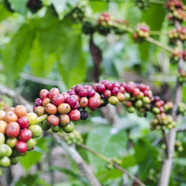 There are two main species of coffee beans, Coffea arabica (65%) and Coffea canephora (35%). Coffea arabica, which produces a fine, aromatic coffee, requires a cooler climate than the Coffea canephora (robusta), which has higher caffeine content. The more disease-sensitive and less productive arabica plant is therefore restricted to higher altitudes, whereas the robusta variety can be grown on the low lands, producing higher yields.