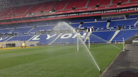 The sprinklers in the middle of the pitch are buried 1 centimetre below the soil surface (they are sunk completely into the turf), which means that the players avoid hitting a sprinkler and injuring themselves. These sprinklers are approved by the FFF.