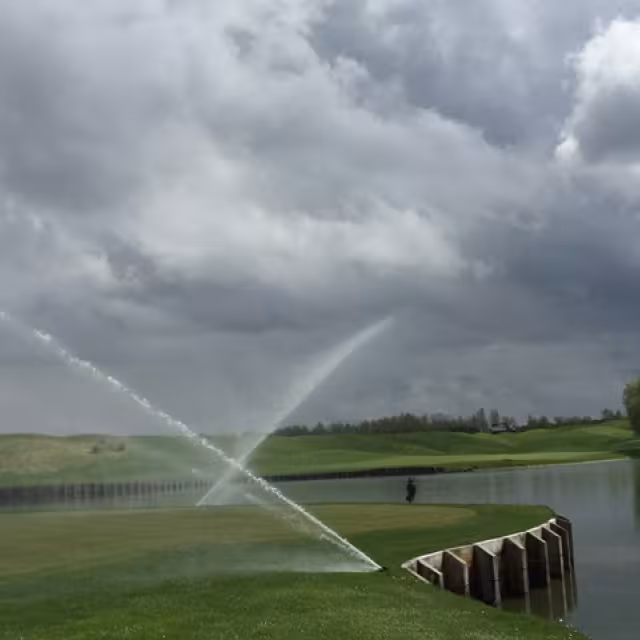 The irrigation work was very important for the hosting of the 2018 Ryder Cup: All the pipes have been replaced on the courses as well as the sprinklers. There are far more new sprinklers installed, of the Toro Infinity type, than previously (on some fairways there are up to 5 rows) and they are laid out in triangular formation. This allows for a total coverage of the courses and a better coefficient of uniformity of the irrigation applications. This new sprinkler layout allows for a saving on water of up to 30%.