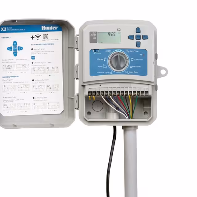 The economical X2 controller continues the legacy set by the popular X-Core® with the same set of reliable and highly efficient capabilities, but brings irrigation management into the next generation by providing the option to add advanced water-saving features using Hunter’s industry-leading wireless Hydrawise technology.