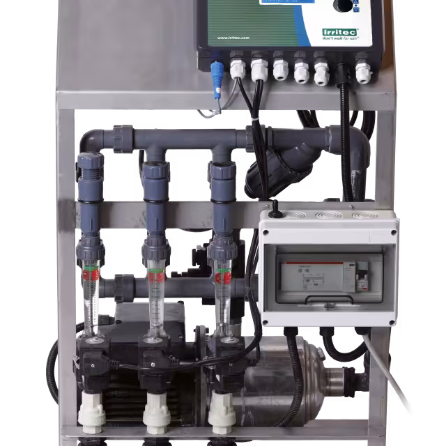 This unit allows the management of the fertigation recipe according to the formula defined by the operator for the automatic the injection of nutrients into the water, improving the efficiency and effectiveness of the whole irrigation system.