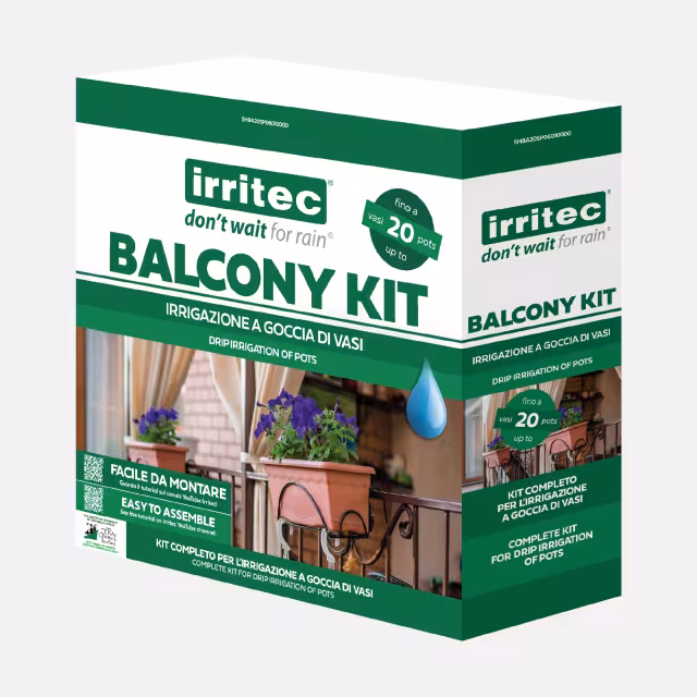 Balcony Kit. Balcony Kit drip irrigation for pots includes everything you need to set up an easy drip irrigation system for potted plants, giving each plant the right amount of water. Irritec’s up-to-date technology is the ideal solution for sustainable irrigation and, with this at-home kit, it can be used for up to 20 potted plants.