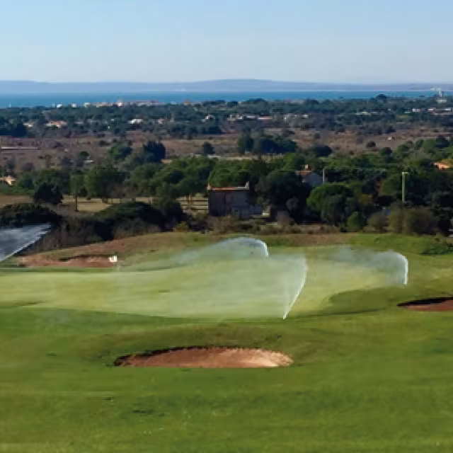 The sprinklers were 30 years old and the installation, consisting of glued PVC pipes, was incompatible with the use of waste water. The installation, therefore, had to be rebuilt in its entirety. The work was carried out in several stages, during the off-peak season, so as not to inconvenience the players. Only six holes have been completed so far. Within the golf course, electrofusion welded PE pipes have been laid using the mole plough technique, which avoids leaving large trenches in the greens. The sprinklers have been repositioned using the new triangular irrigation layout, in order to obtain an optimum coefficient of uniformity for the irrigation water. Saving water becomes even more important when there are more sprinklers. The installation has Rain Bird part- (sector) and full-circle sprinklers working side by side, as well as Rain Bird’s Nimbus central control system. The first 6 holes were commissioned in March 2019 and they are irrigated with the city’s waste water.