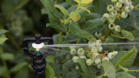 Microsprinklers are low capacity water emitters of the sprinkler type, but smaller in size than the conventional sprinklers, with flow rates of around 250 litres/h. They are placed on a relatively close rectangular or triangular spacing for the maximum overlap to irrigate potatoes, carrots, leafy vegetables, groundnuts and other densely planted field crops. This method is reliable, highly efficient and easy to apply, operate and handle.