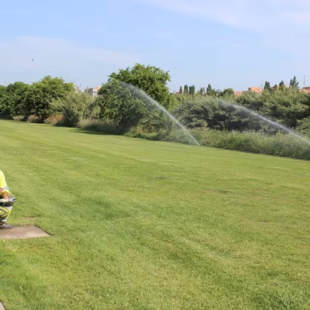 The whole irrigation installation has been renovated, with the introduction of a centralised control system and the replacement of the sprinklers.