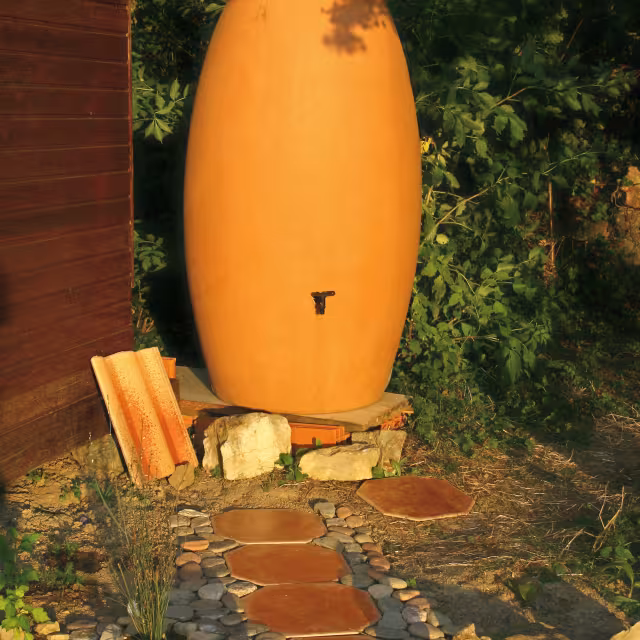 The outdoor tank is part of a system that collects rainwater to cover daily water needs (watering, drainage, washing, etc.). This economical and environmentally friendly solution helps reduce water bills.