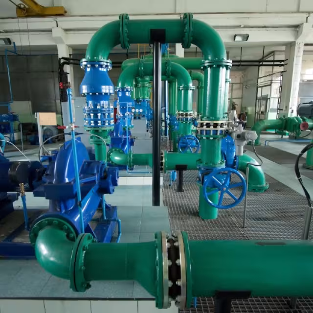 If submersible pumps are used when drawing water from a reservoir or lake, advantages are improved theft protection, because the pumps are submerged, and reduced noise, because noise is limited to that from the pipes and the valves.