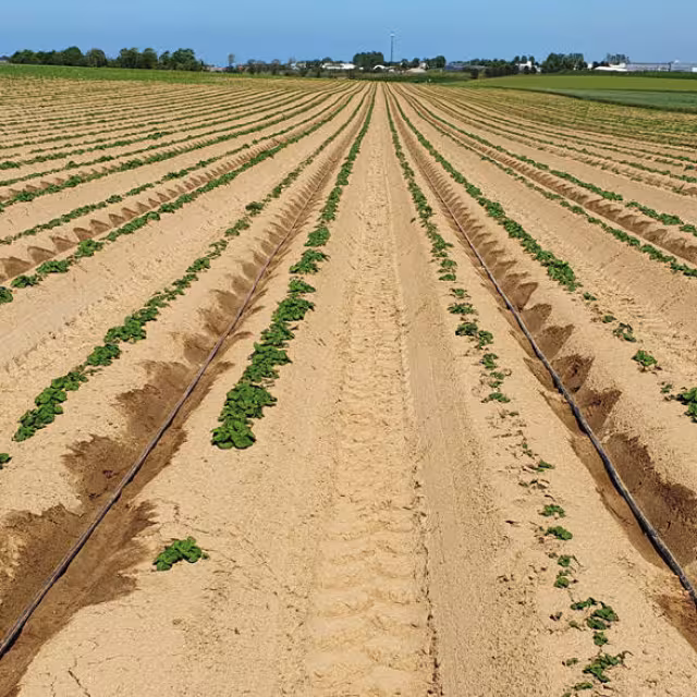 De part son faible système racinaire, la pomme de terre est une culture très sensible au stress hydrique, ce qui est préjudiciable pour le développement et la composition des tubercules. Irriguer permet de régulariser la récolte et d’assurer un flux de produit constant pour les usines de transformation ou les clients.